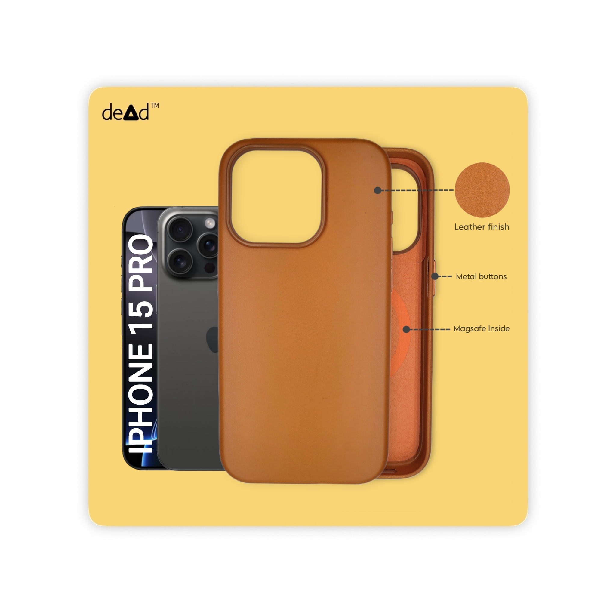 dead Leather Back Cover For APPLE iPhone 15 Pro, Pair of Wipes, Micro-Fibre Cloth, dead Stickers
