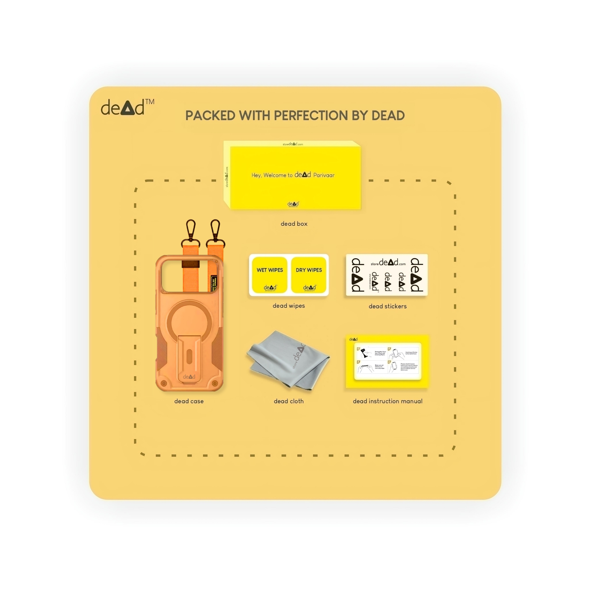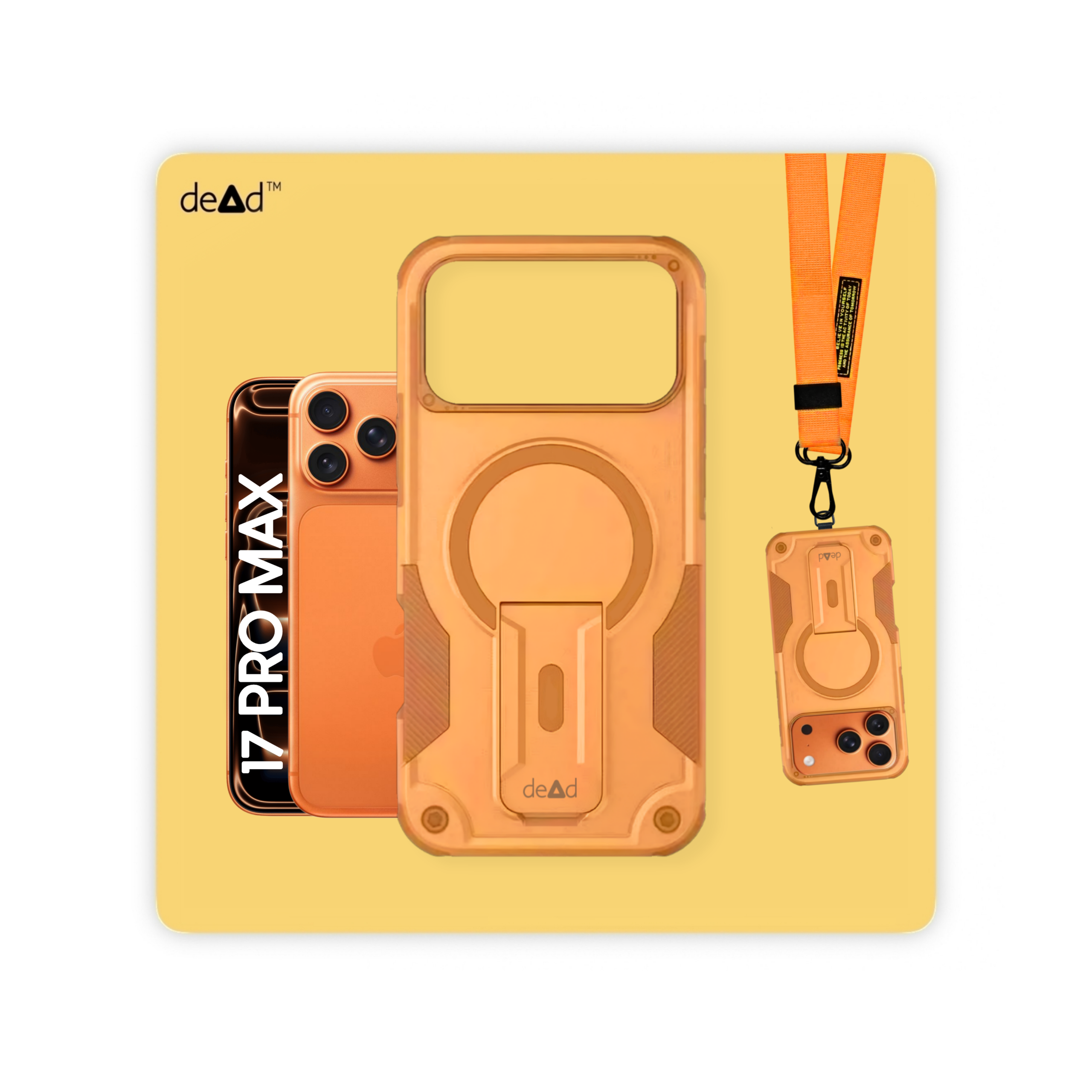 dead Rugged Back Cover For Apple iPhone 17 Pro Max, Pair of Wipes, Micro-Fibre Cloth, dead Stickers and Nylon Lanyard