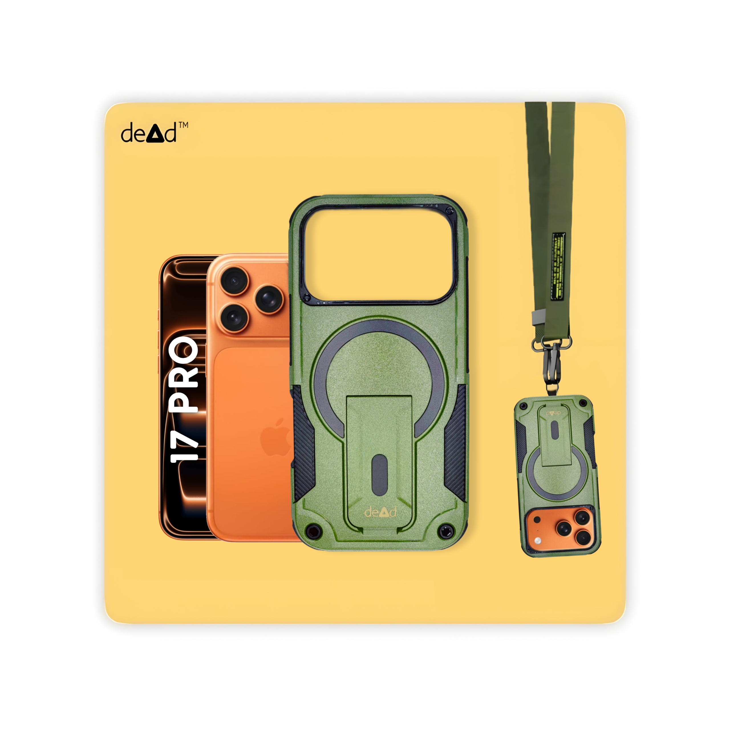 dead Rugged Back Cover For Apple iPhone 17 Pro, Pair of Wipes, Micro-Fibre Cloth, dead Stickers and Nylon Lanyard