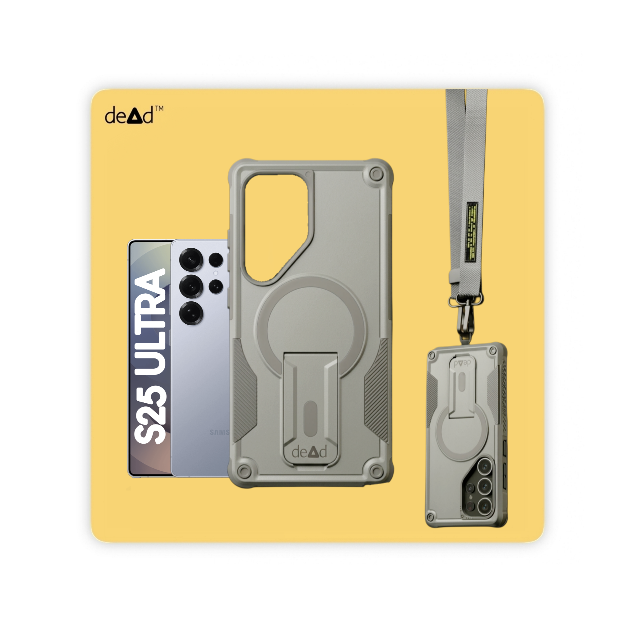 dead Rugged Back Cover For SAMSUNG Galaxy S25 Ultra 5G, Pair of Wipes, Micro-Fibre Cloth, dead Stickers and Nylon Lanyard
