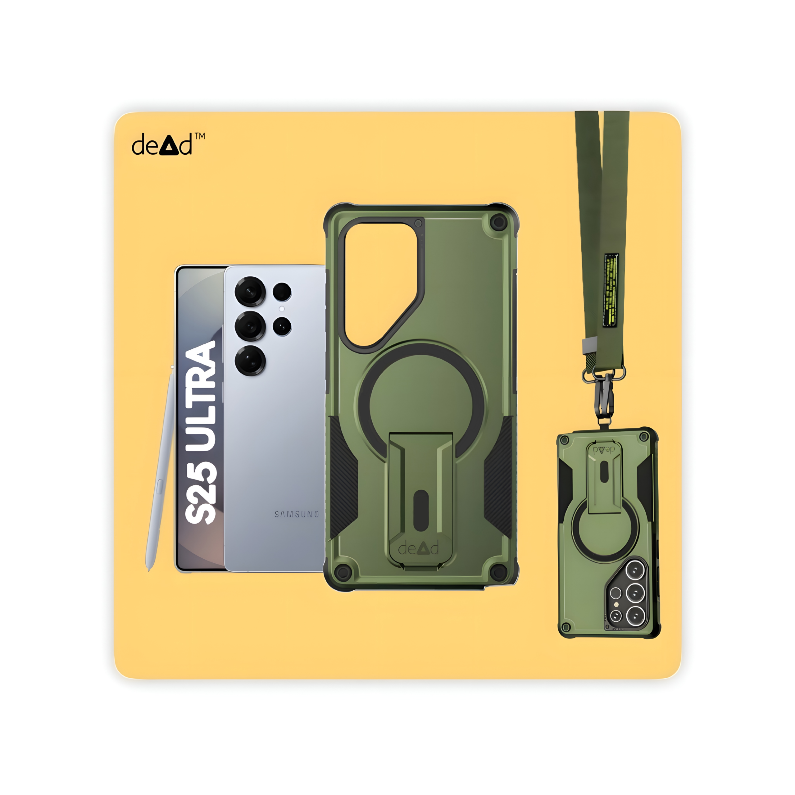 dead Rugged Back Cover For SAMSUNG Galaxy S25 Ultra 5G, Pair of Wipes, Micro-Fibre Cloth, dead Stickers and Nylon Lanyard
