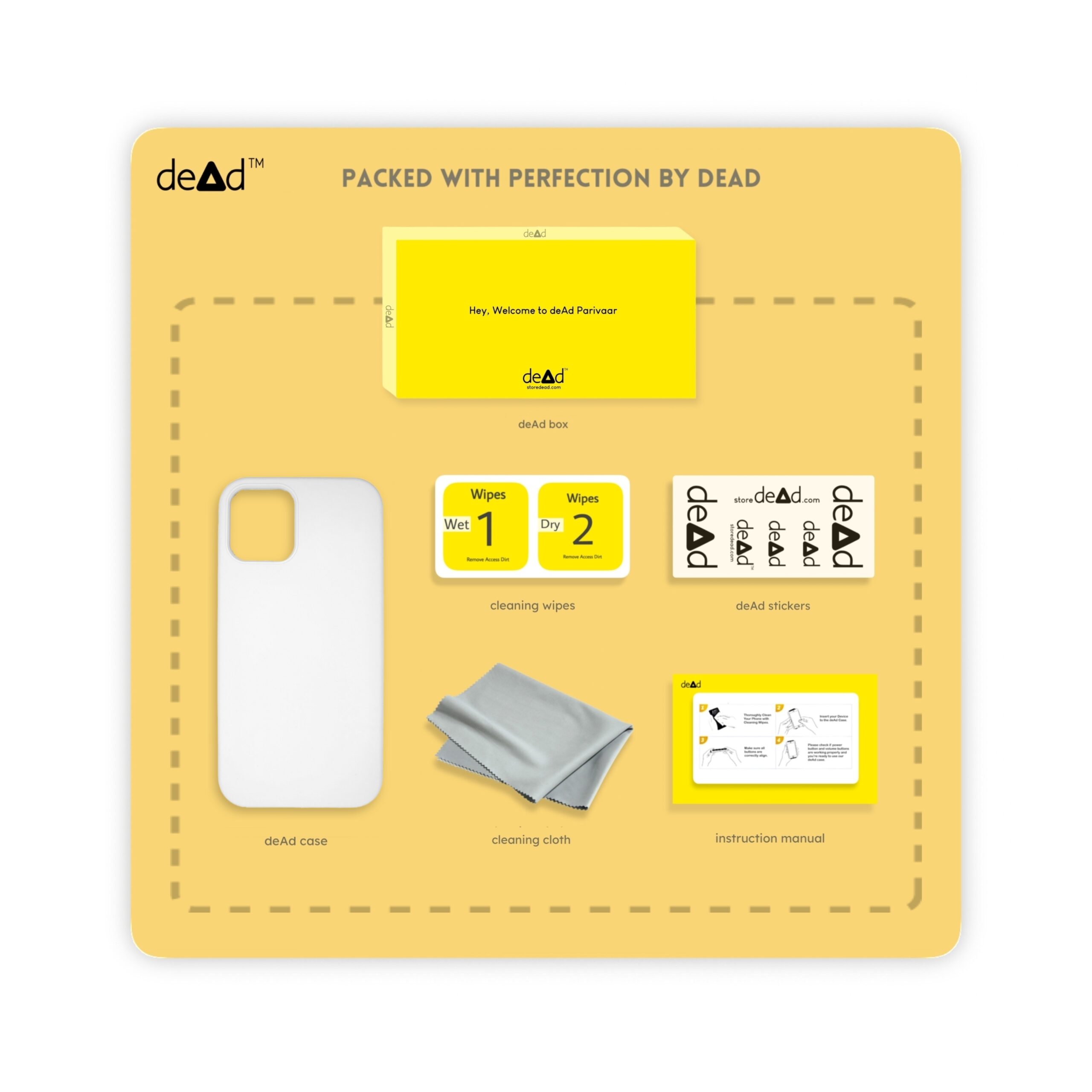 dead Silicone Back Cover For Apple iPhone 12 Mini, Pair of Wipes, Micro-Fibre Cloth, dead Stickers