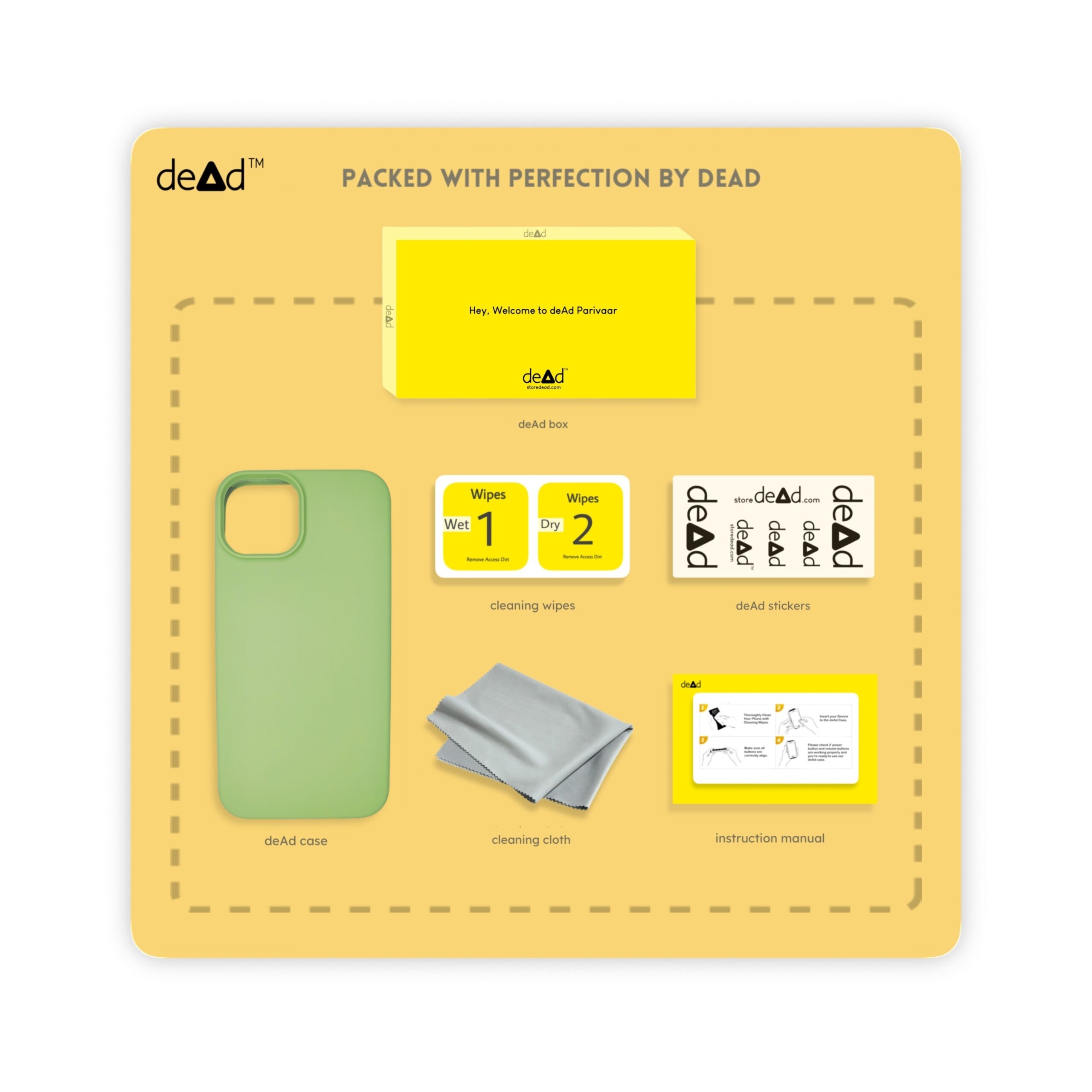 dead Silicone Back Cover For Apple iPhone 14 Plus, Pair of Wipes, Micro-Fibre Cloth, dead Stickers