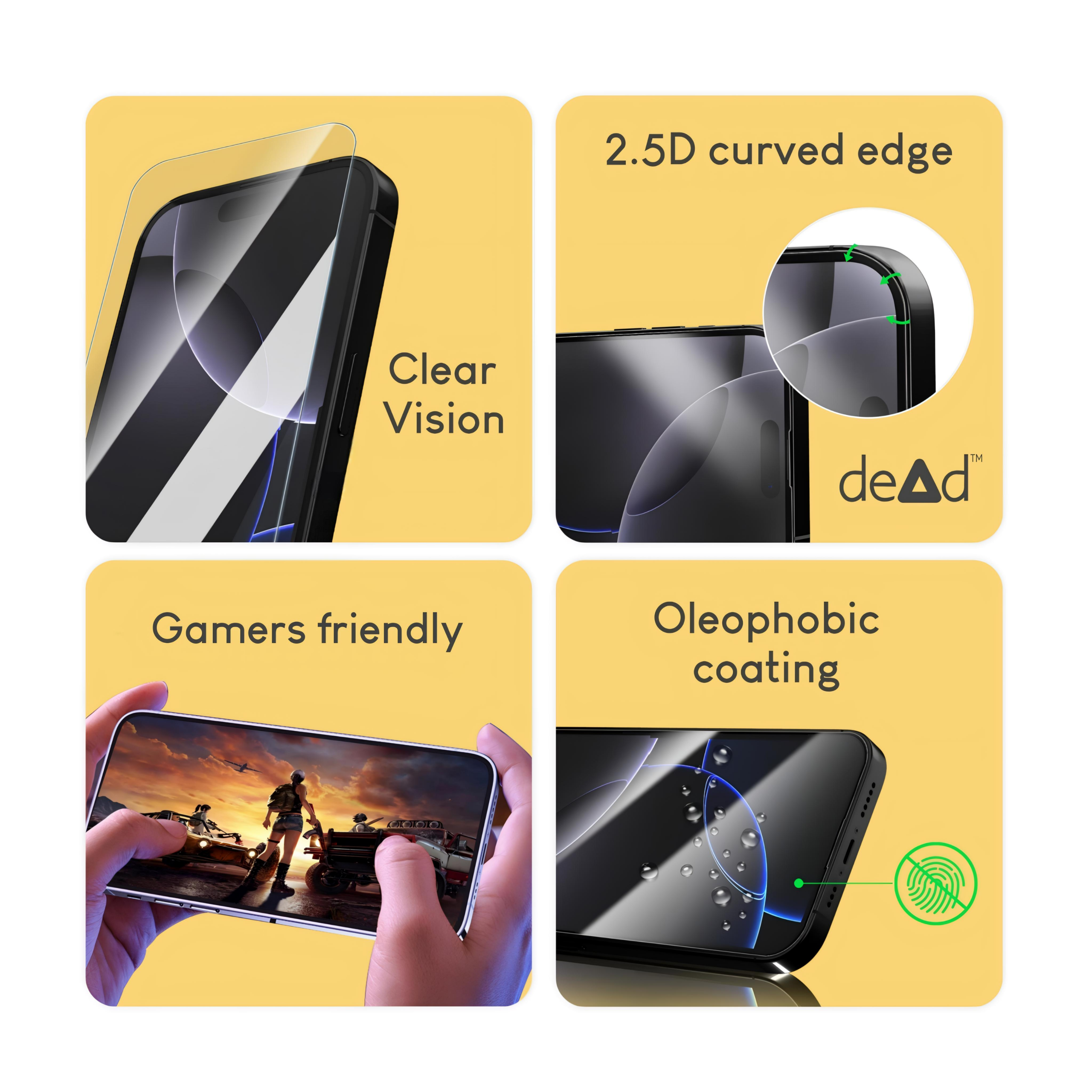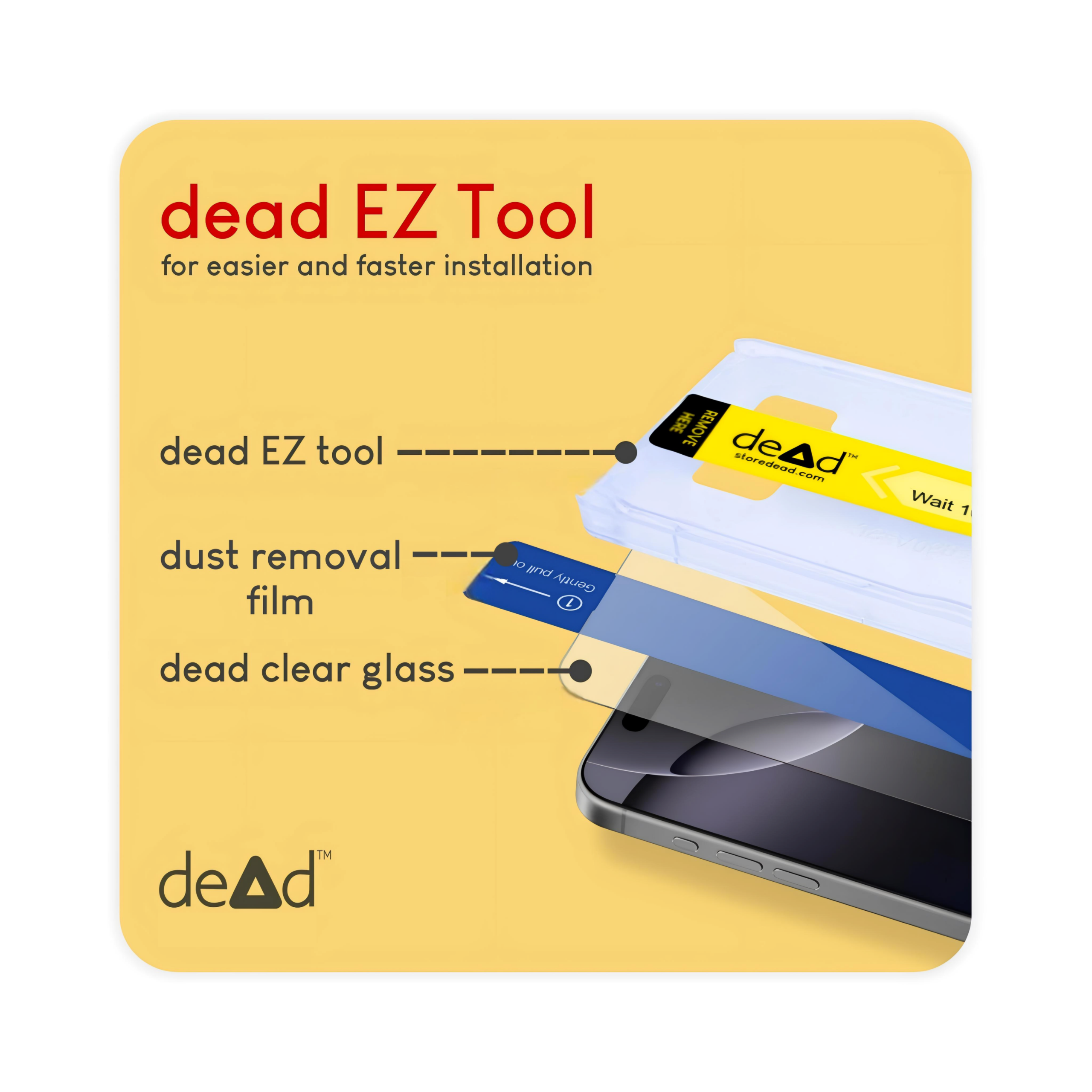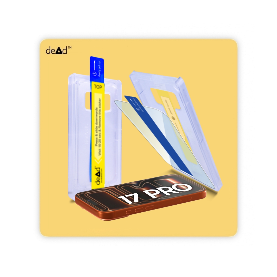 dead Tempered Glass For APPLE iPhone 17 Pro, Pair of Wipes, Micro-Fibre Cloth, dead Stickers and dead EZ Installation tool for APPLE iPhone 17 Pro
